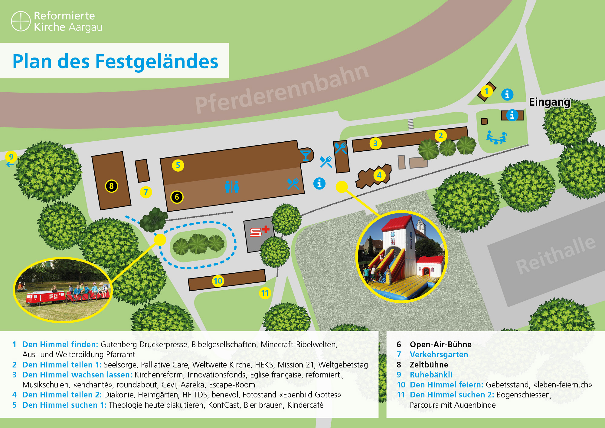 Die Vielfalt der Reformierten Kirche Aargau − der Kirchgemeinden, der Landeskirche, der Partnerinstitutionen − kann von 10 bis 20 Uhr an zahlreichen kreativen, interaktiven Ständen erlebt werden.